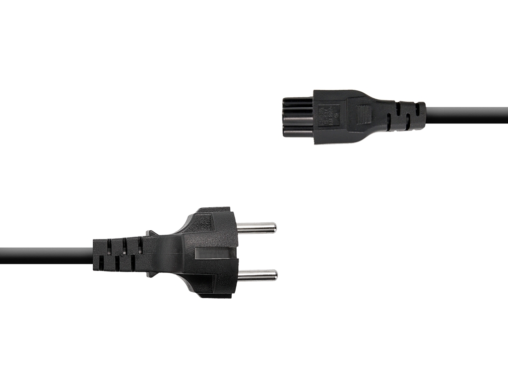 Kabel zasilający w standardzie 3 żyłowym, wtyk typu koniczyna/miki. Jest to jeden z podstawowych kabli wykorzystywanych w zasilaczach laptopowych, oraz przy podłączaniu sprzętu RTV. Kabel zasilający z linią ochronną (uziemieniem).