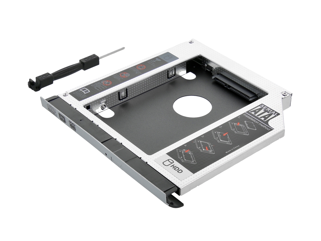 Aluminiowa, fabrycznie nowa kieszeń na dysk HDD 2.5 cala montowana w miejsce napędu optycznego komputerów przenośnych.